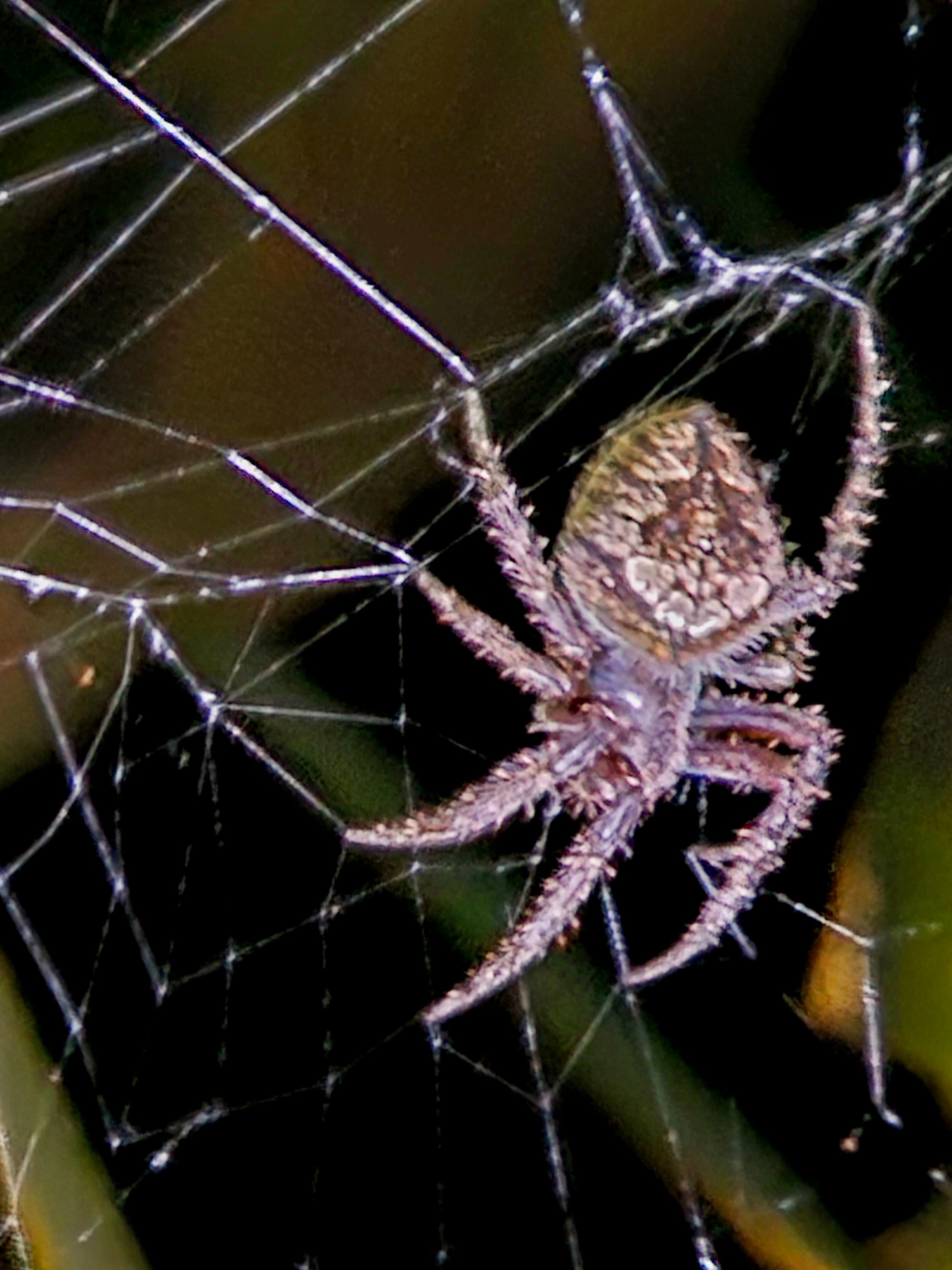 Strong leg color contrast and pleasing web context with good background separation. Central body slightly soft but overall, a solid, natural field capture.